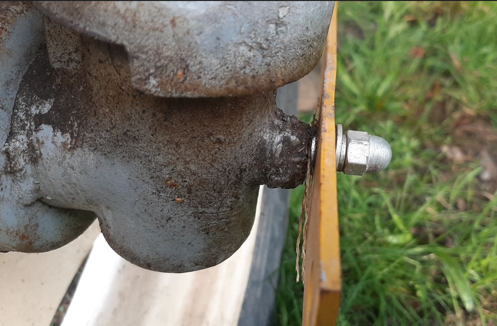 Dziś zrobiłem zdjęcia tej dolnej śruby. Nie wiem, czy tam coś było fabrycznie czy to dospawane. Wygląda tak: