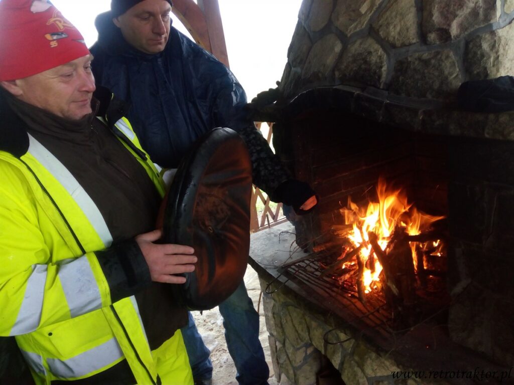 Nie wszyscy byli z tego zadowoleni, więc z kolegą Bogdanem i jego wnukiem Kubą, oraz Kazikiem z Dolnego śląska postanowiliśmy odłączyć się od grupy i pozwiedzać okolicę na 3 traktory. Planu trasy nie mieliśmy żadnego – po prostu pojechaliśmy drogą wiodącą obok noclegów sprawdzić co jest dalej. Przejechaliśmy przez rzeczkę, następnie błotnisto – wodnistą drogą dotarliśmy ponownie do asfaltu, następnie do miejscowości Olchowiec. Na skrzyżowaniu losowo wybraliśmy jedną z dróg, która już kilkaset metrów dalej zamiast asfaltu zrobiła się błotnista i wyboista. Jako że jechaliśmy na trzy traktory, linkę też mieliśmy ze sobą pojechaliśmy dalej. Niestety po kilku kilometrach jazdy bezdrożami zatrzymała nas przeszkoda w postaci zwalonego na drodze drzewa. Piły łańcuchowej nikt ze sobą nie zabrał więc trzeba było zawrócić. Na tym przejeździe połamaliśmy wszystkie trzy flagi na nisko zwisających gałęziach, ale wspomnienia mamy bezcenne 🙂 Następnie wracając sprawdziliśmy jeszcze jedną polną (dość podłą) drogę w miejscowości Ropienka po czym ubłoceni i zadowoleni wróciliśmy na noclegi.