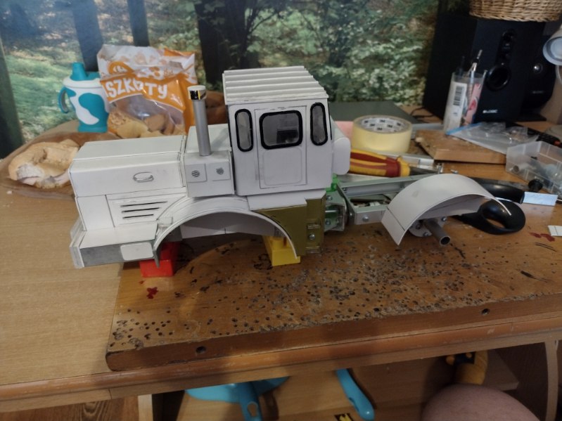 Witam wszystkich. Zacząłem niedawno ruskiego gada ciągnik rolniczy kirowiec k700 . Materiały uzyte to: PVC z rur ,plexi , guma śruby M3 i profile uluminiowe na ramę.