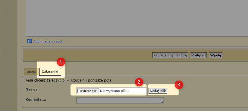 1. Załącznik z funkcji wbudowanej w forum, organicznie 256kb na 1 załącznik, max 3 załączniki w poście dozwolone formaty (jpg, gif, tif, png itp.)