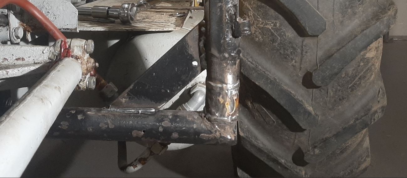 Od sąsiada dostałem do pospawania widły do palet na TUZ. To znaczy oryginalnie były widły do palet, ale ktoś odciął łapy i zamiast nich przyspawał kły balotów. Niestety zrobił to dość nieudolnie, i na spawie jeden kieł pękł (przegrzany). I w takim stanie to dostałem - jeden kieł, rama do TUZ i dwie łapy do palet.
