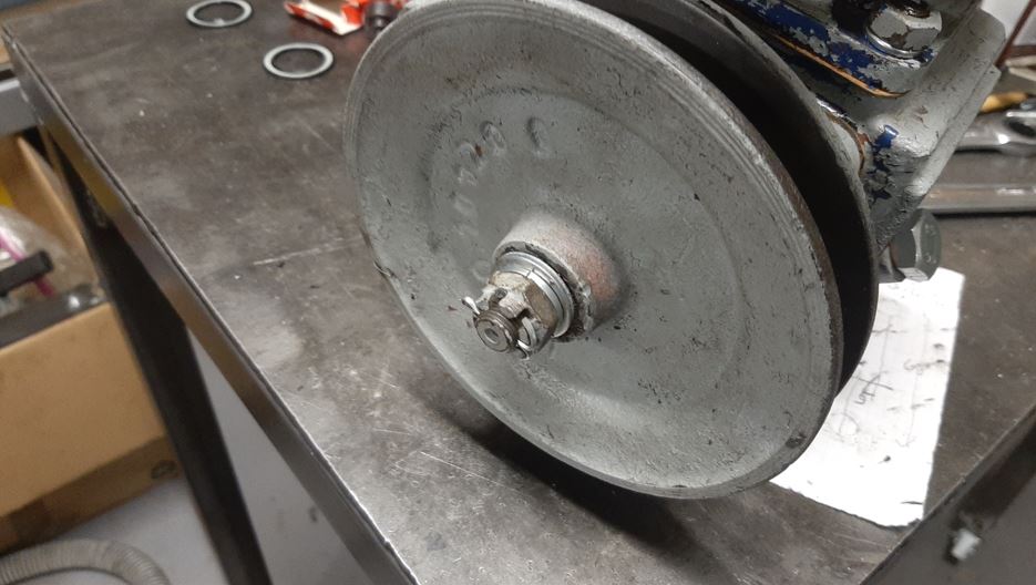 Koło pasowe na razie zostawiłem jak jest tylko dodałem ekstra podkładkę aby zawleczka przez otwór zazębiała się z koronką.