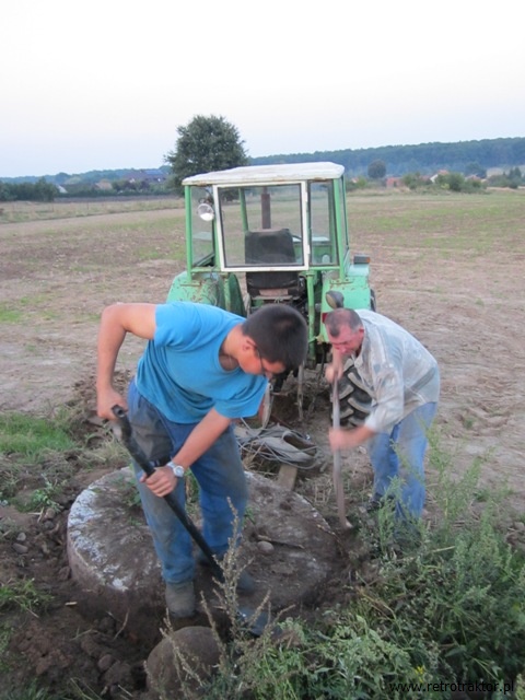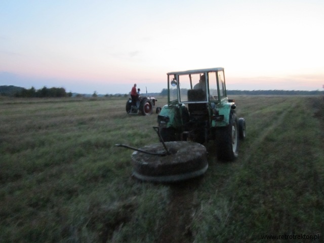 Na początku września br. Marek z Albertem zorganizowali spontaniczną akcję ratowania kamienia młyńskiego, który tylko przeszkadzał na skraju pola i zagrażało mu zniszczenie. Szczęśliwym zbiegiem okoliczności zostałem wciągnięty w akcję i miałem okazję przyglądać się i nieco pomóc w tym przedsięwzięciu. Nie spodziewałem się, że wyrwanie tego eksponatu będzie tak trudne. Waga okazała się tak duża, że Zetor 25K nie był w stanie ruszyć go z miejsca, a Ursus C-360 nie dał rady unieść na widłach podnośnika. Aktualnie kamień oczekuje na zabieg konserwacji i uzupełnienia braków – w przyszłości zapewne będzie ozdobą skansenu.