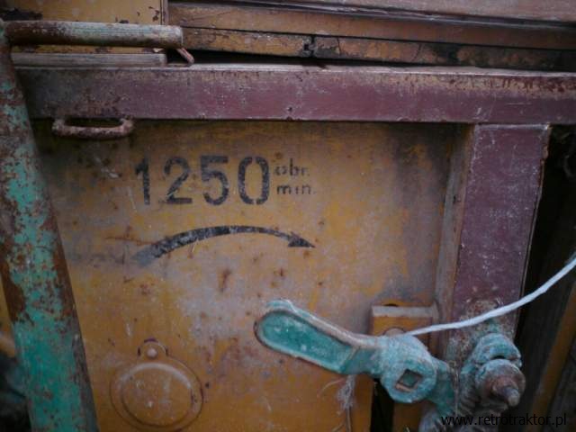 Namalowana strzałka wskazywała kierunek i zalecane obroty bębna. Z prawej strony widać dźwignię nastawczą szczeliny wlotowej.