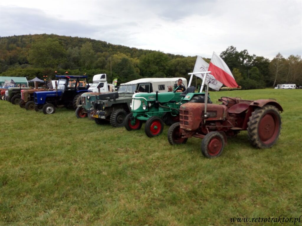 24 Pożegnanie Lata w Rudawce Rymanowskiej odbyło się w  weekend 30-31 sierpnia. Kolekcjonerzy z klubu Stary Traktor Bieszczady już w piątek dzień wcześniej zaczęli zwozić swoje eksponaty. Przyjechało 25 traktorów, 3 zabytkowe samochody oraz ceglarka z lat 50-tych ubiegłego wieku. W ramach pokazów miała się odbyć po raz pierwszy próba produkcji cegieł na owej ceglarce, ale niestety maszyna zapchała się ze względu na zbyt duży luz pomiędzy popychającym glinę ślimakiem a obudową. No ale, próba się odbyła, a w następnym roku na pewno będzie lepiej 😉